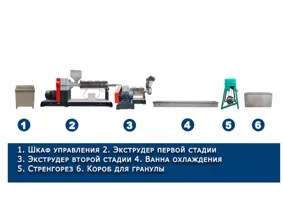 - Нарезка гранул с помощью стренгореза либо устройства водокольцевой резки.