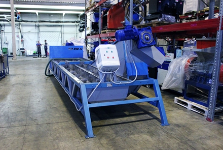 - • Шнековые ванны используется для жестких видов пластика со значительной степенью загрязнения. Емкость и валы ванны изготовлены из нержавеющей стали и хорошо противостоит коррозии от воды, могут работать в агрессивной среде. Высокая производительность благодаря прохождению отходов фактически 18 м пути очистки. В то же время сама ванна очень компактная и занимает площадь не более 25 м².