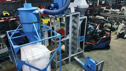 - • Воздушные разделители эффективны при работе с измельченными ПЭТ бутылками. Разделитель предназначен для отделения этикеток от основного полимера. Одновременно с сепарацией выполняется досушка хлопьев ПЭТ посредством создаваемого вентилятором потока воздуха.