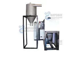 Процедура отжима влаги из мытой плёнки является безпрерывным, а не порциональным, как в агломераторах. Не таким энергозатратным, как на агломераторах или на сушильных машинах.