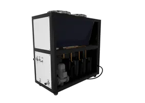 ✔️ Выделяют установки для охлаждения воздуха и для охлаждения жидкости. В первом случае за отведение тепла отвечает воздух. При этом посредством вентиляторов осуществляется его подача на змеевики теплообменника и охлаждение находящейся в них жидкости. Водяной чиллер использует для теплообмена воду или тосол.